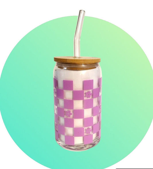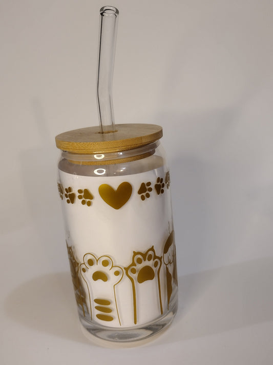 16 oz or 20 oz Cat paw glass can cup with lid and glass straw